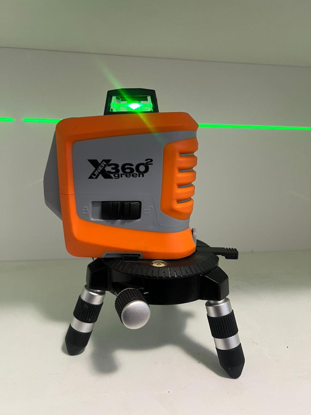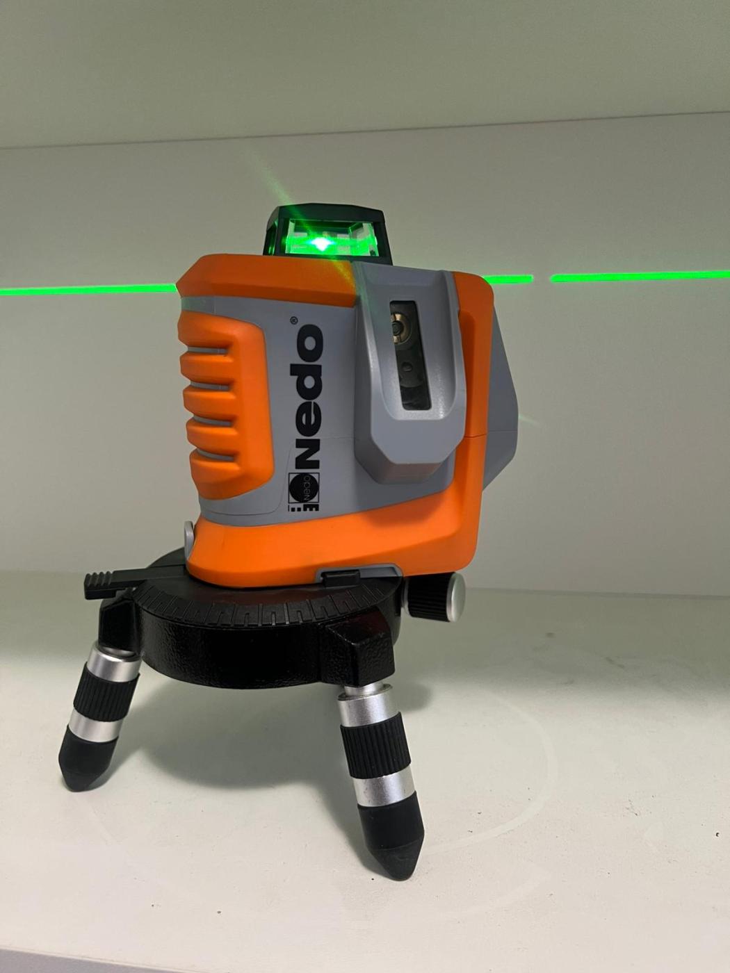 Multičarový křížový laser Nedo X-liner 360° 2 green, zřetelný zelený paprsek. Pro stavební nivelaci, vytyčení roviny a pravých úhlů v interieru
