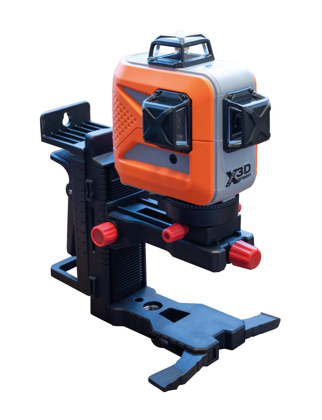 X-Liner 3D Green vytváří 3x360° linie kolem dokola s přesností +/- 3mm / 10m a dosahem 25m přesnost +/- 3 mm, dosah 10 m, výdrž na sadu baterií 15 hodin, vytváří tři na sebe kolmé laserové liniek